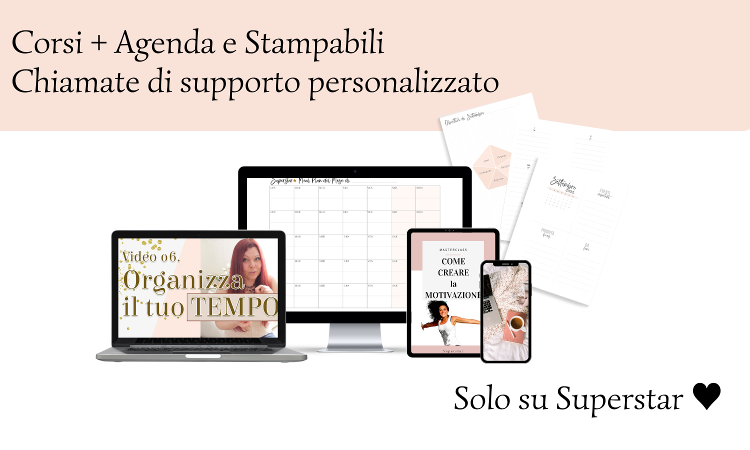 E se ti va di raggiungere i tuoi obiettivi insieme a me e alle altre studentesse di Superstar, sarò lieta di seguirti passo passo fino alla vittoria.